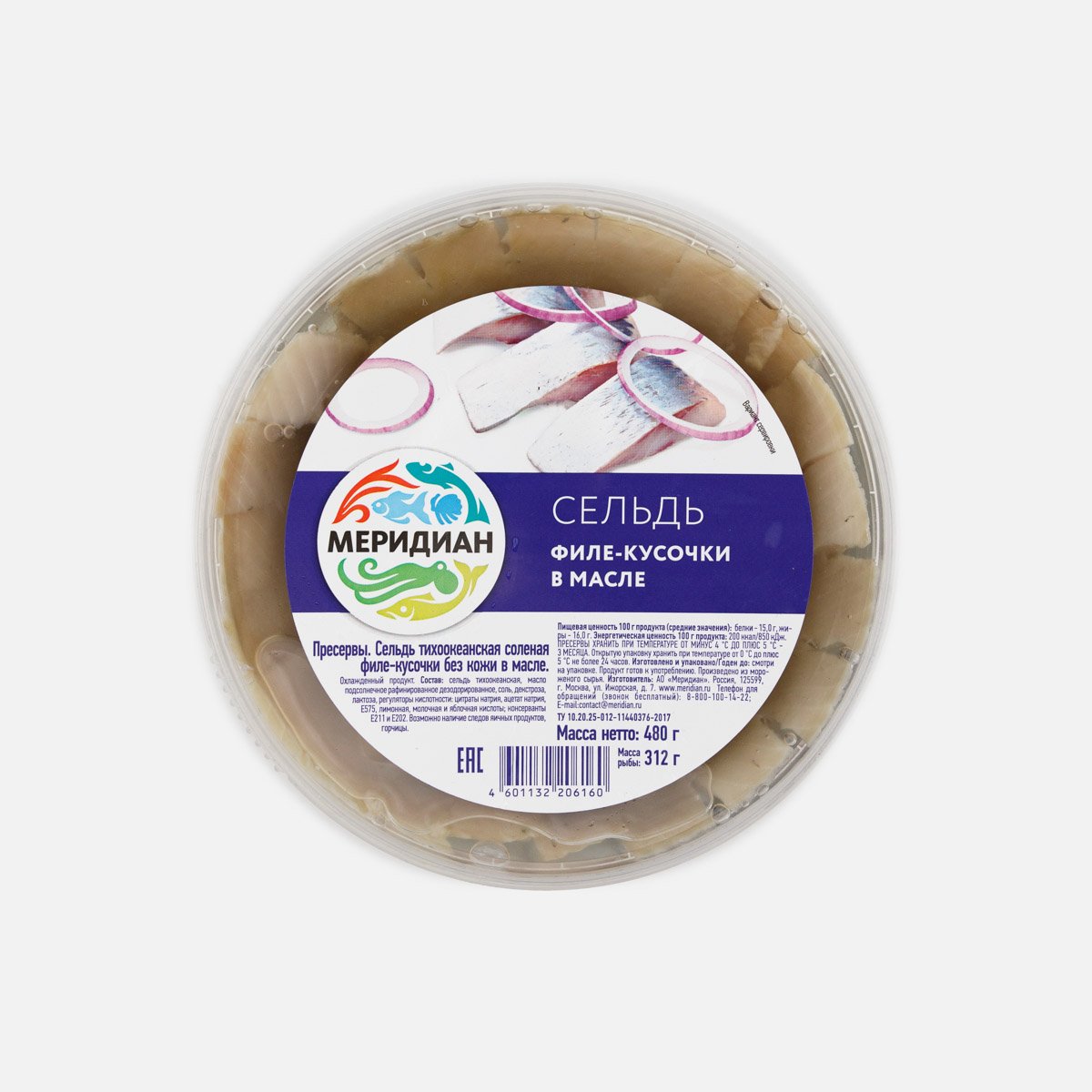 Сельдь Меридиан атлантическая ф/к в масле пл/б 480г