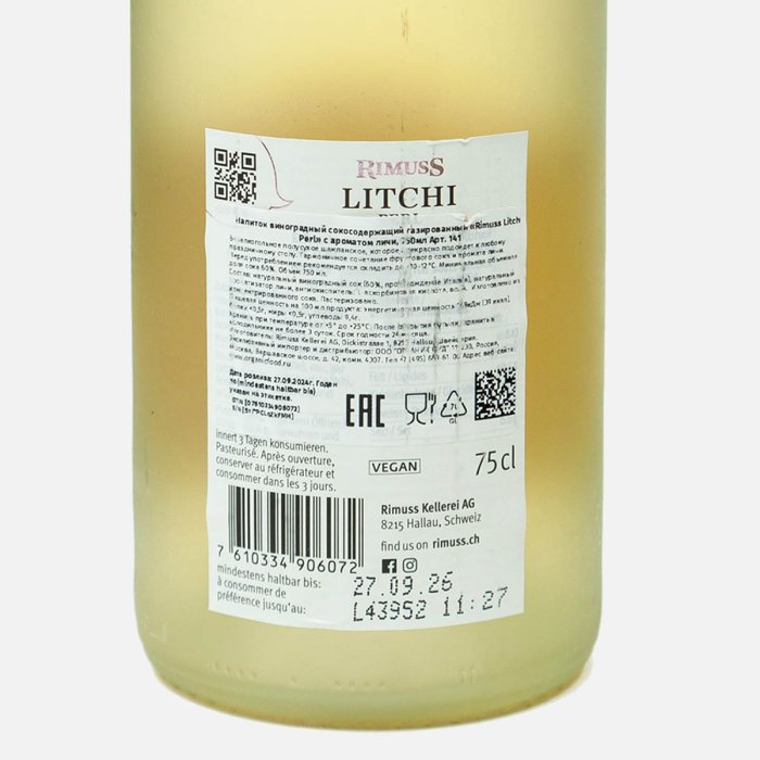 Шампанское Римусс Личи Перл б/алк п/сух ст/б 0,75л