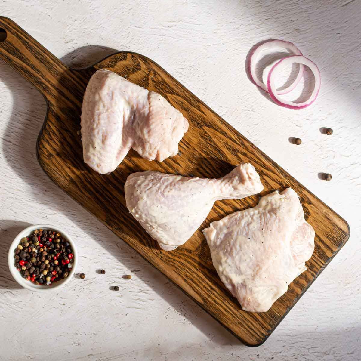 Цыплёнок, минеральная вода, майонез, лук репчатый, соль, перец черный молотый