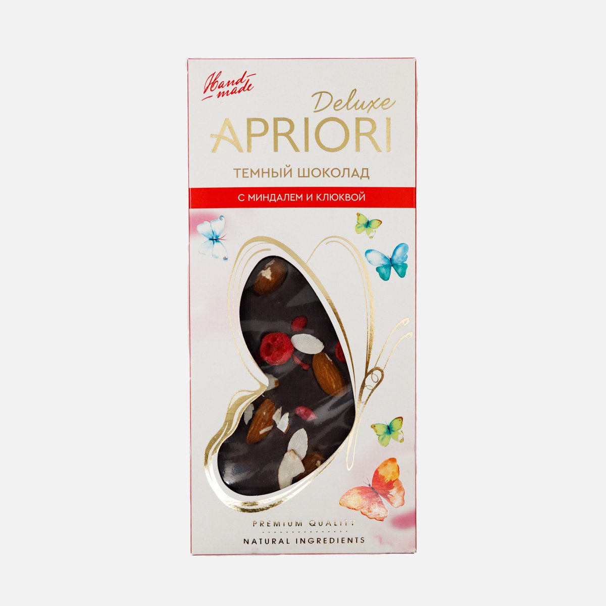 Шоколад Априори Делюкс Горький с миндалем и клюквой к/к 85г