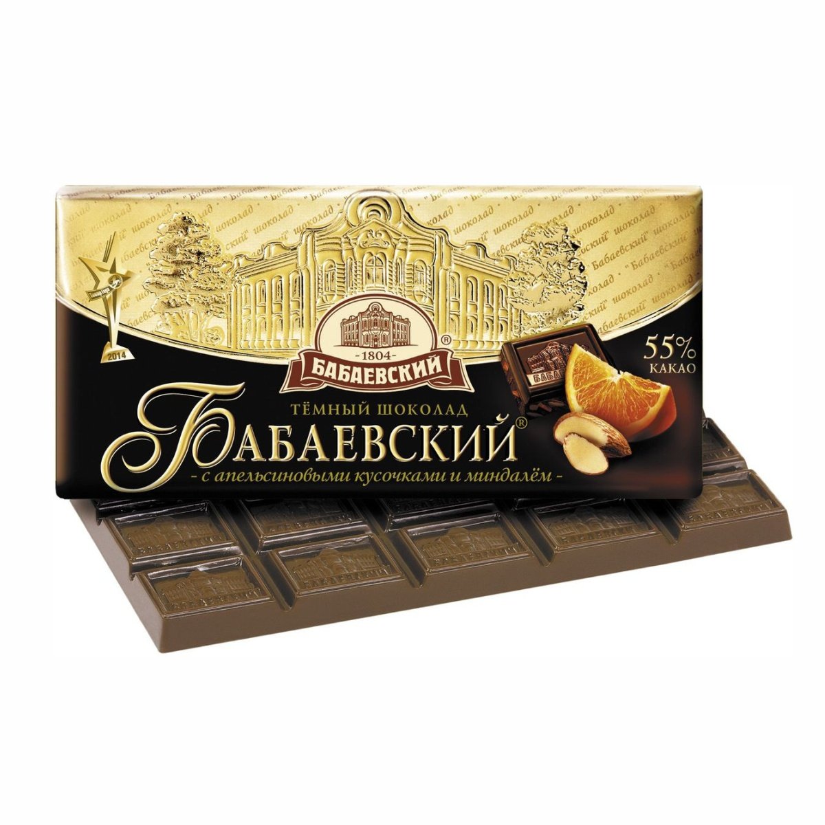 Шоколад Бабаевский темный с апельсин кусочками/миндалем 100г