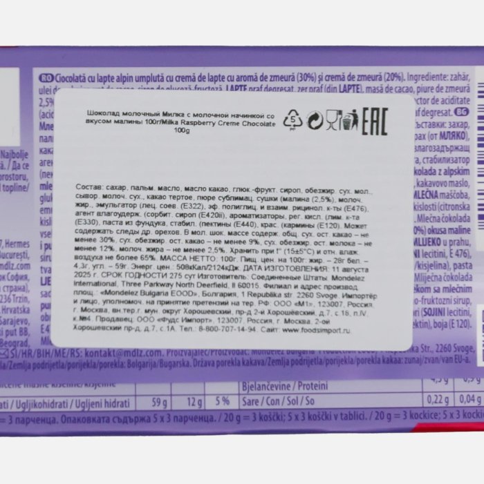Шоколад Милка Расберри Крем молочный 100г