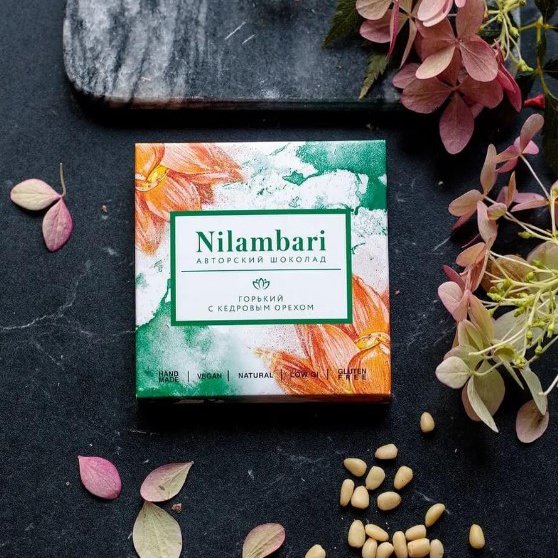 Шоколад Ниламбари с кедровым орехом горький к/к 65г