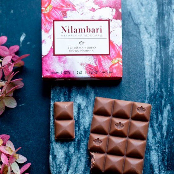 Шоколад Ниламбари Ягода-малина на кешью белый к/к 65г