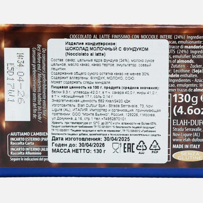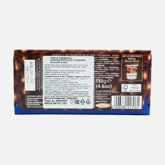 Шоколад Нови молочный с фундуком 130г