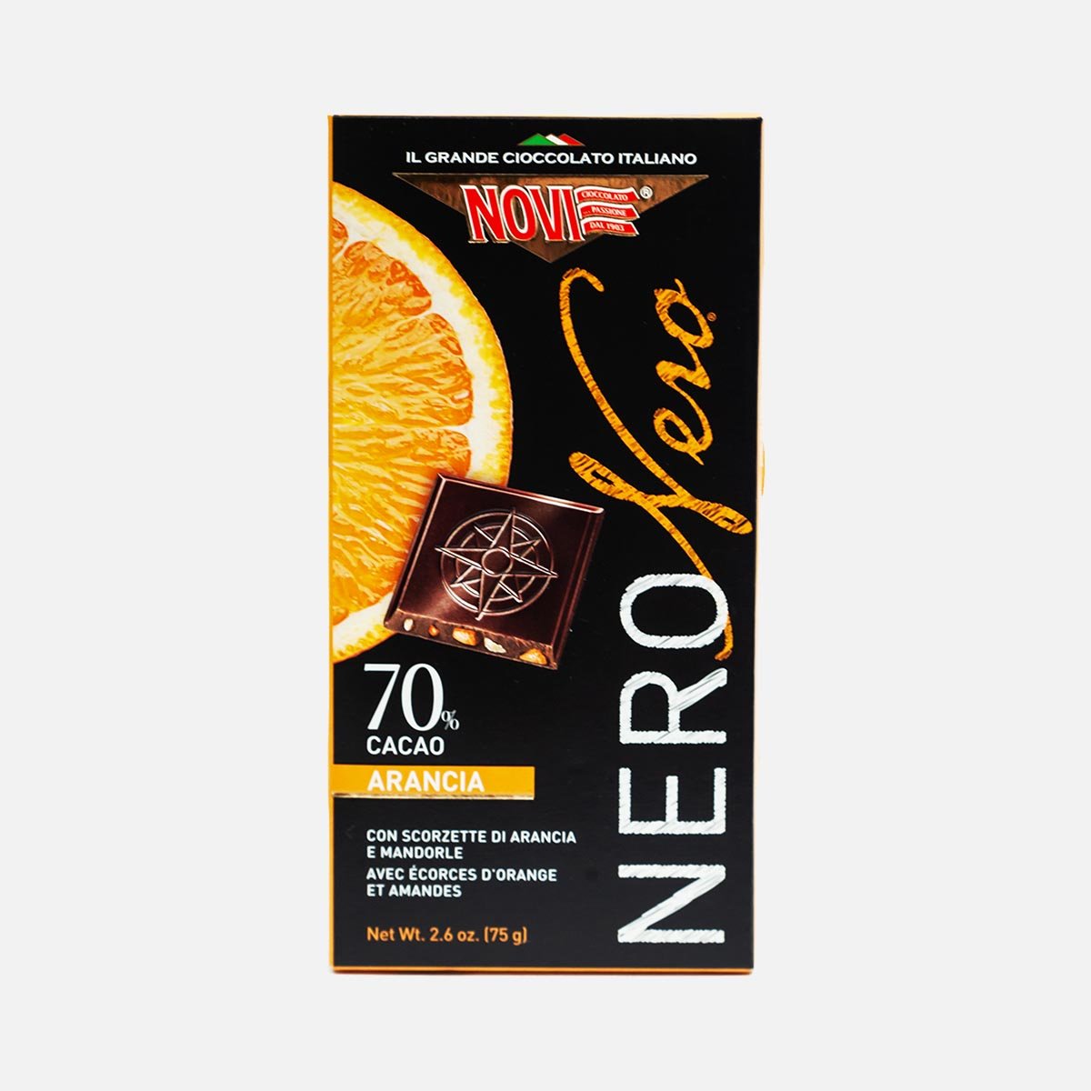 Шоколад Нови Неро горький с апельсином и миндалем 75г