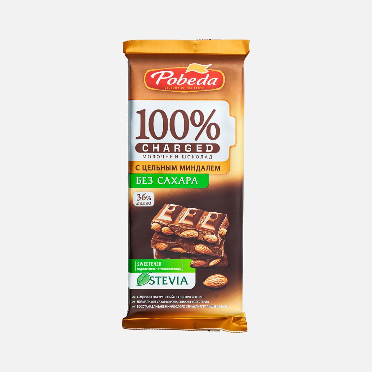 Шоколад Победа Чаржед молочный с цельным миндалем б/сах 90г