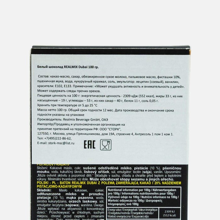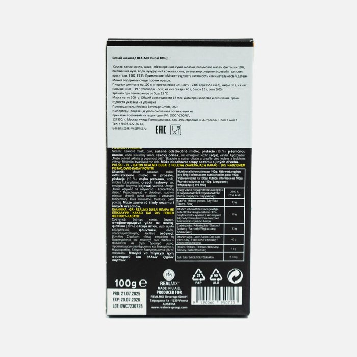 Шоколад Риалмикс Дубай Пистачио Кунафа Вайт 100г