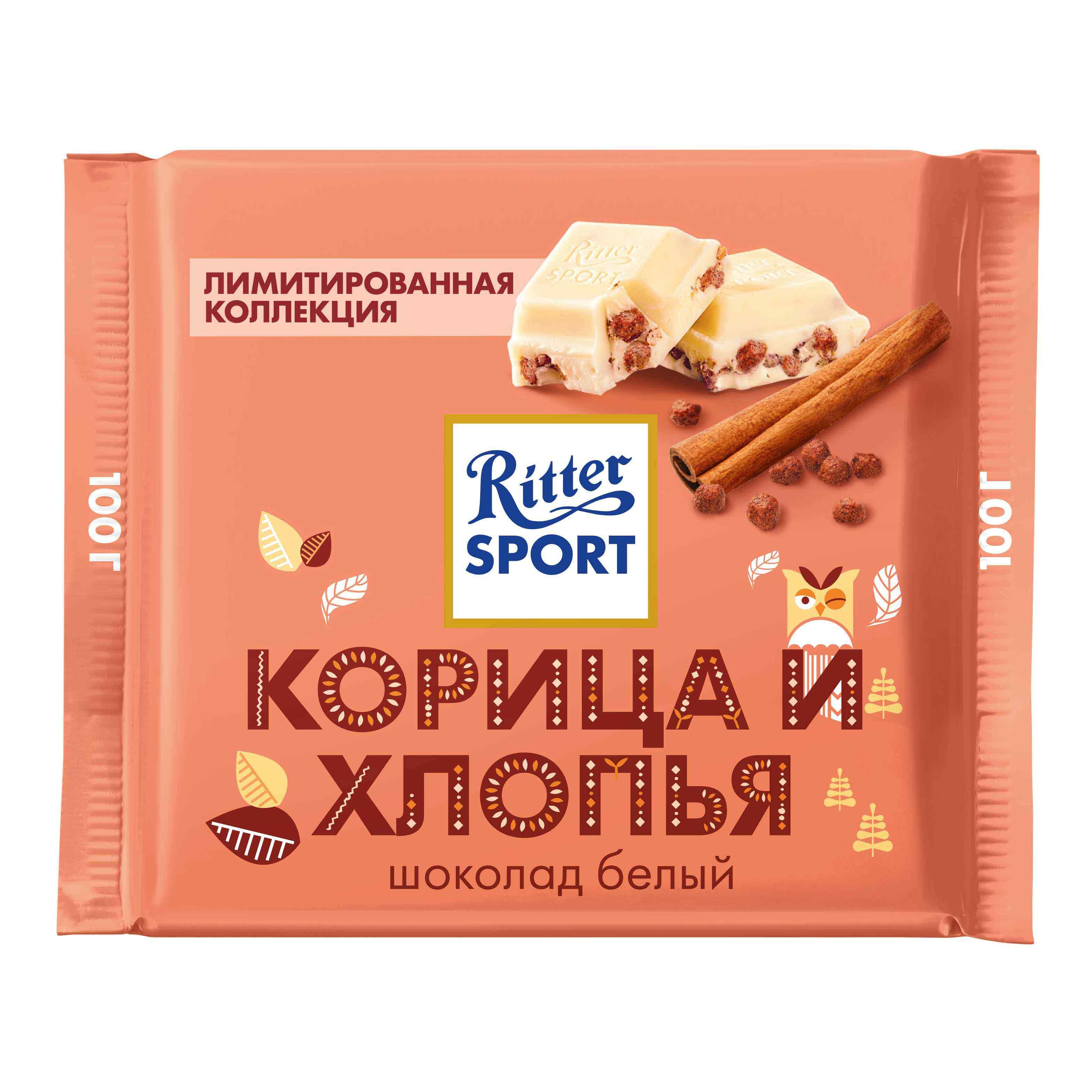 Шоколад Риттер Спорт белый с корицей/хлопьями 100г