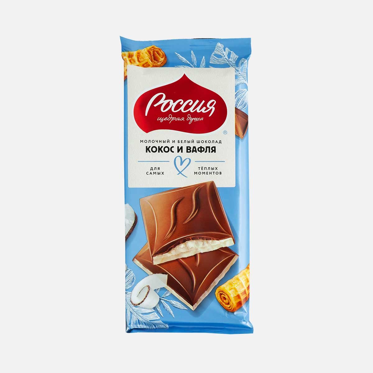 Шоколад Россия молоч/белый кокос/вафля 75г