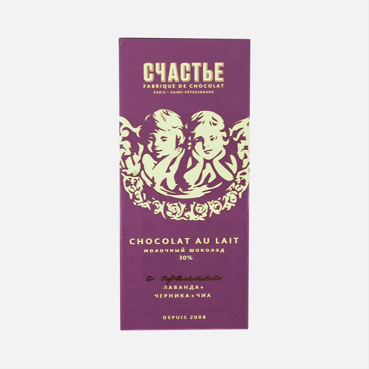 Шоколад Счастье с пралине лаванда/черника/чиа 100г