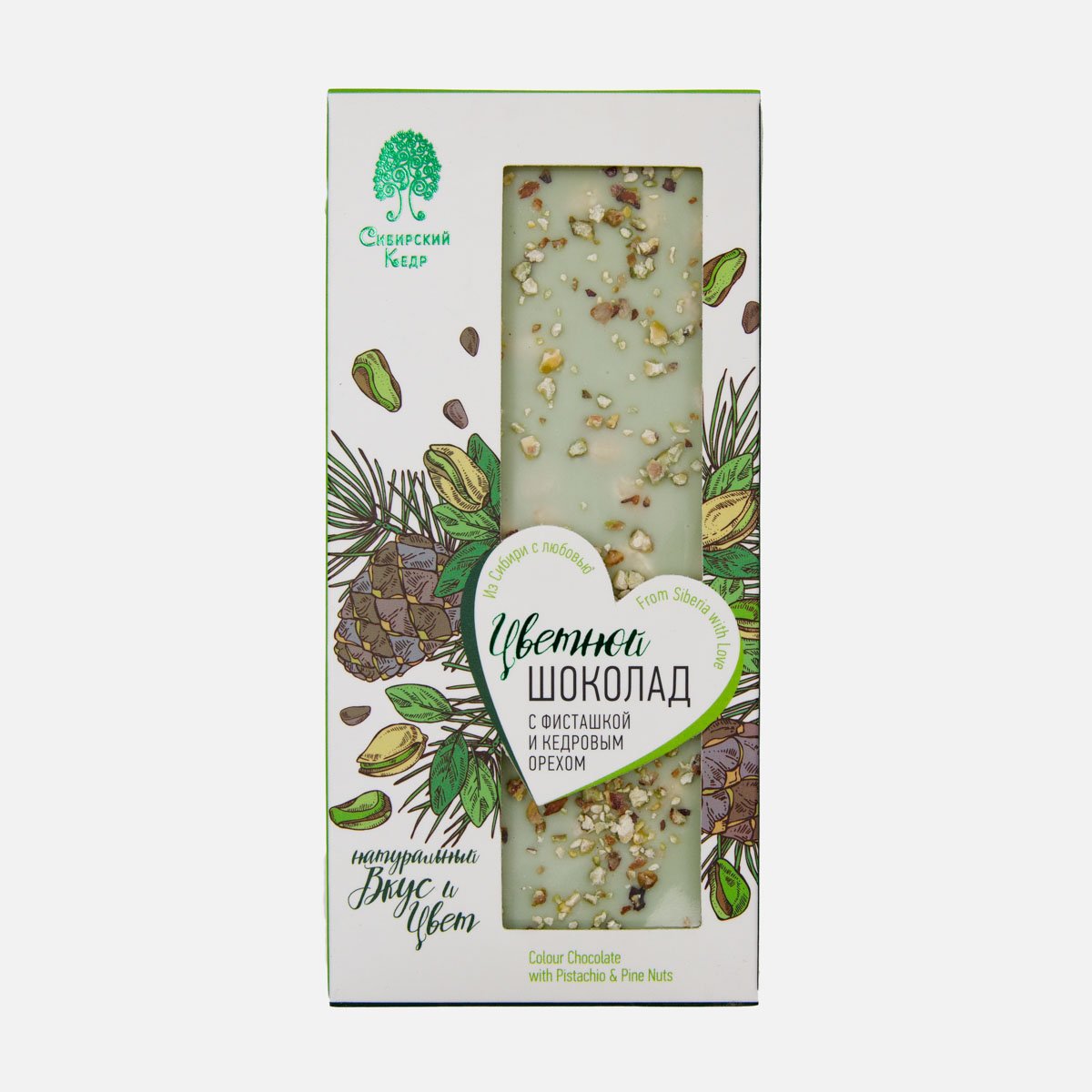 Шоколад Сибирский кедр Цветной с фисташкой и кедровым орехом 100г