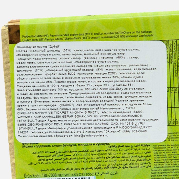 Шоколадная плитка Байнд Дубай 100г