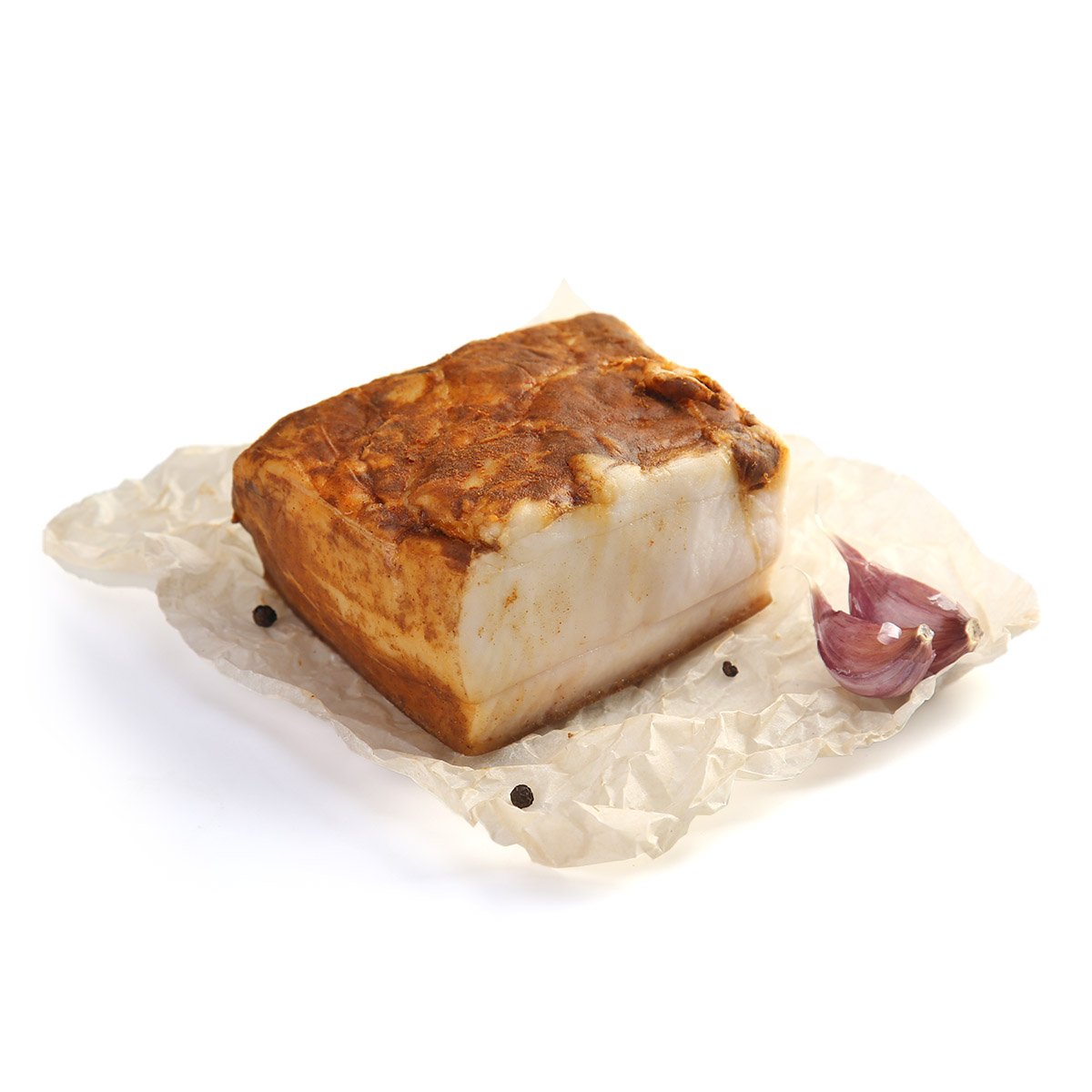 Соленое фермерское сало холодного копчения натёртое паприкой.