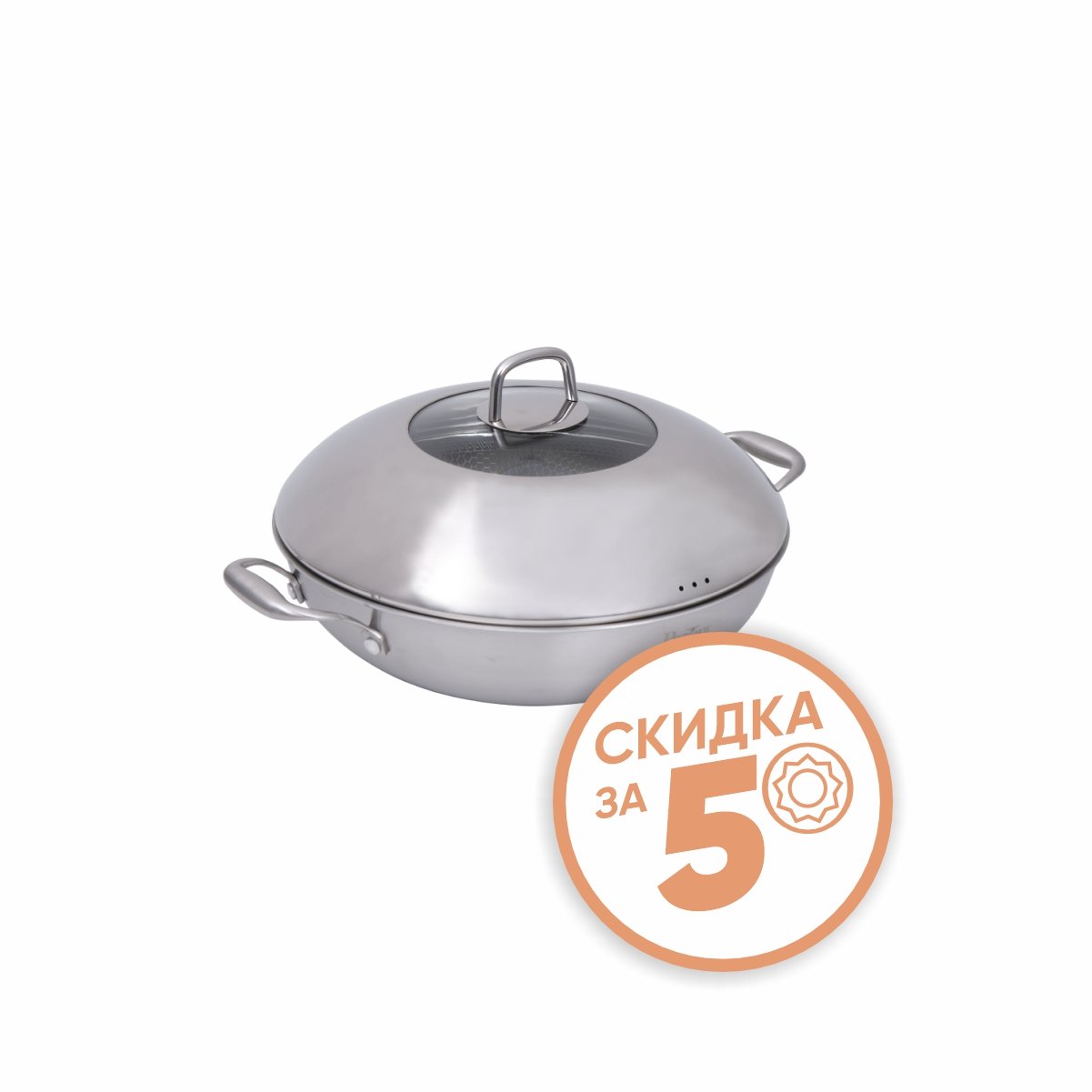 Сковорода Пинтинокс вок 32см с крышкой с антиприг покрыт Гекса Кор