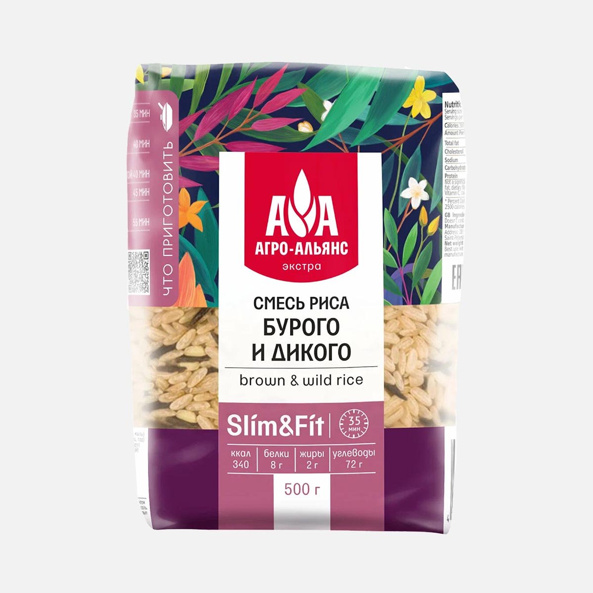 Смесь риса Агро-Альянс Экстра Бурого и Дикого нешлиф пл/пак 500г