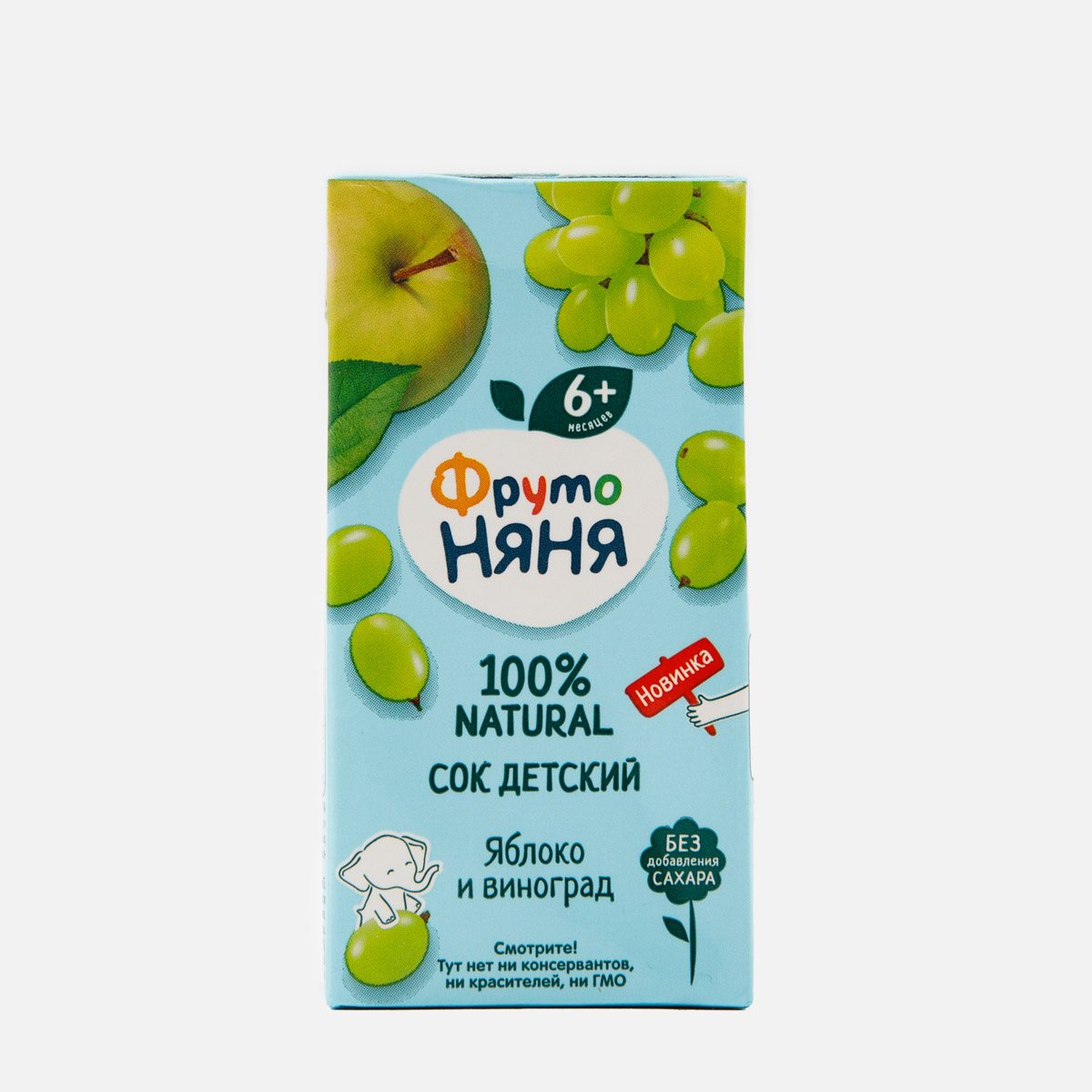 Сок ФрутоНяня Яблоко и виноград осветлен с 6мес т/п 0,2л