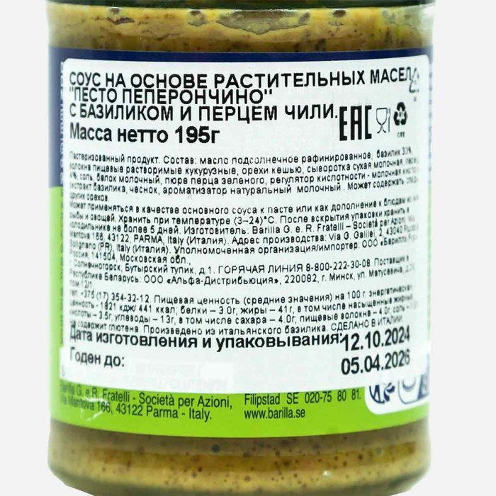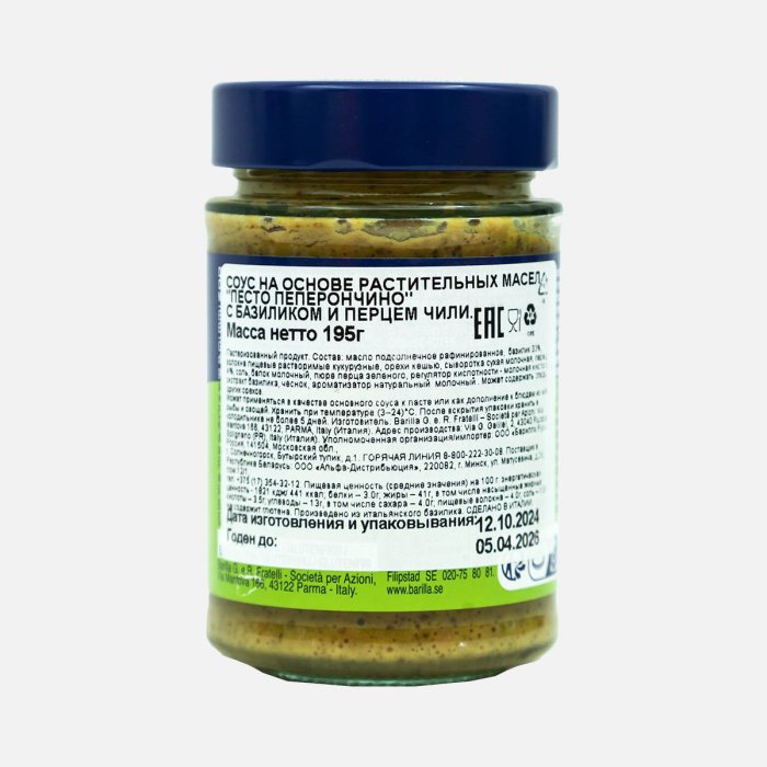 Соус Барилла Песто Пеперончино с базиликом и перцем чили ст/б 195г