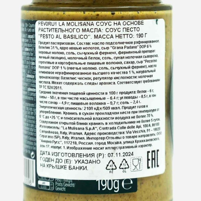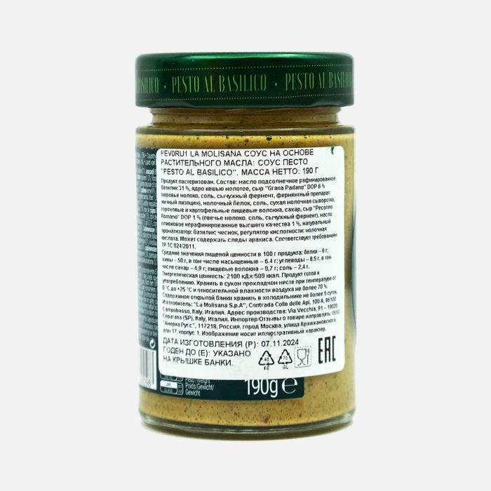 Соус Ла Молисана Песто с базиликом ст/б 190г