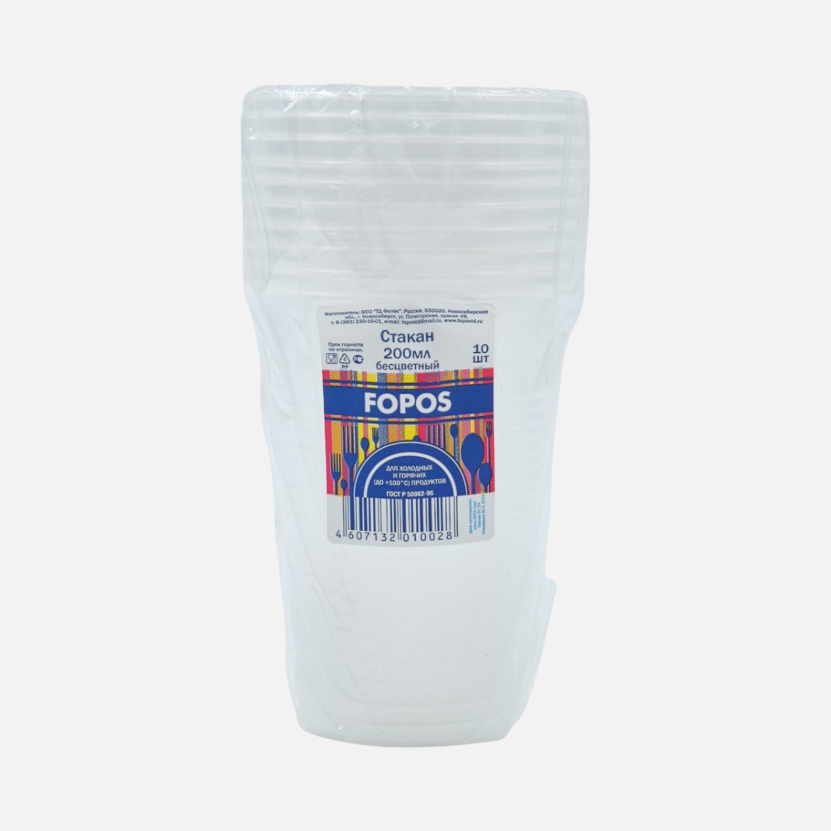 Стакан Фопос 200мл 10шт б/цв пластик 0028