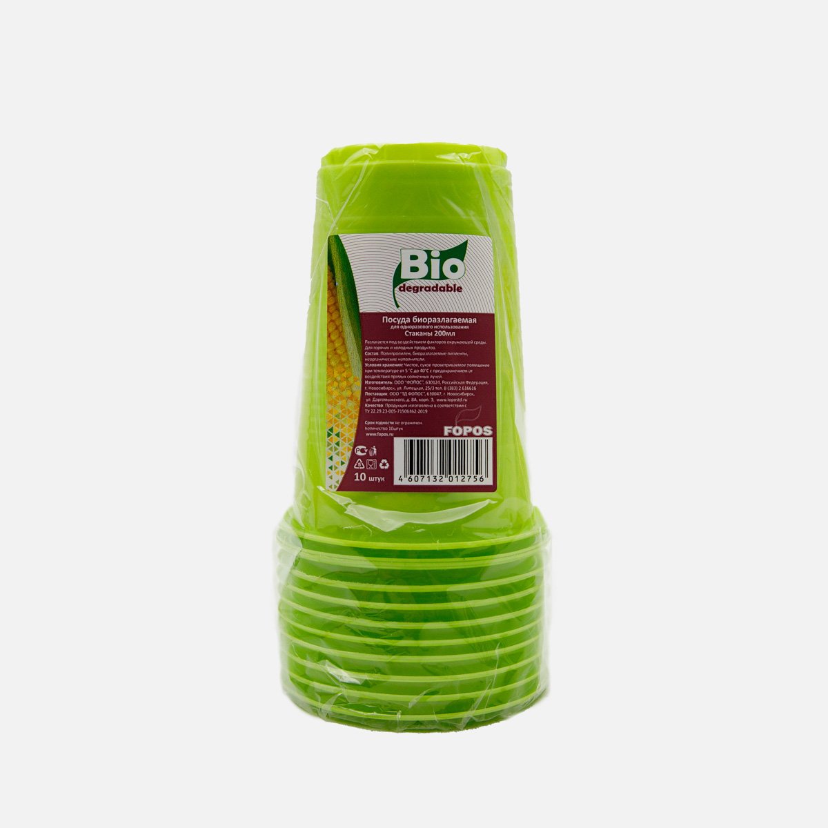 Стакан Фопос 200мл Био зеленый 10шт ПП 7*7*14см