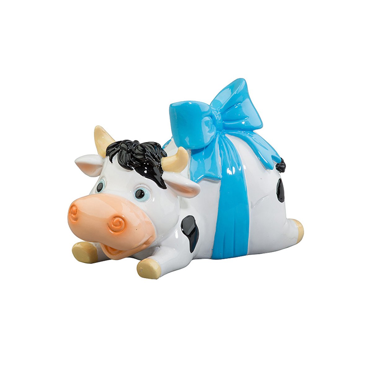 СувенирКопилкаТеленок подарок с голубым бантом 8х12,5х9,5 полимер
