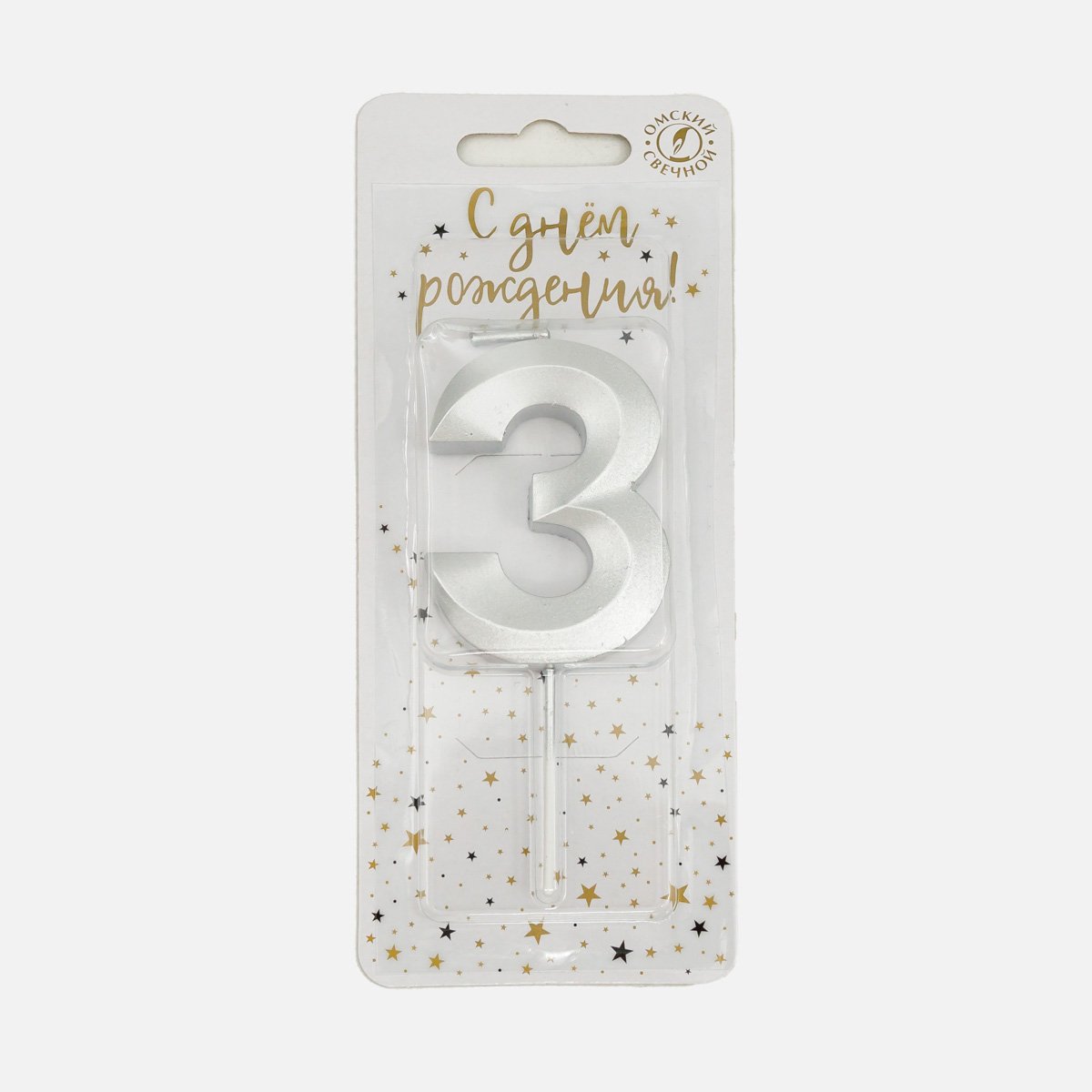 Свеча Омский СЗ тортовая на шпажке 3 Витые серебро парафин 4х1,1х9,5