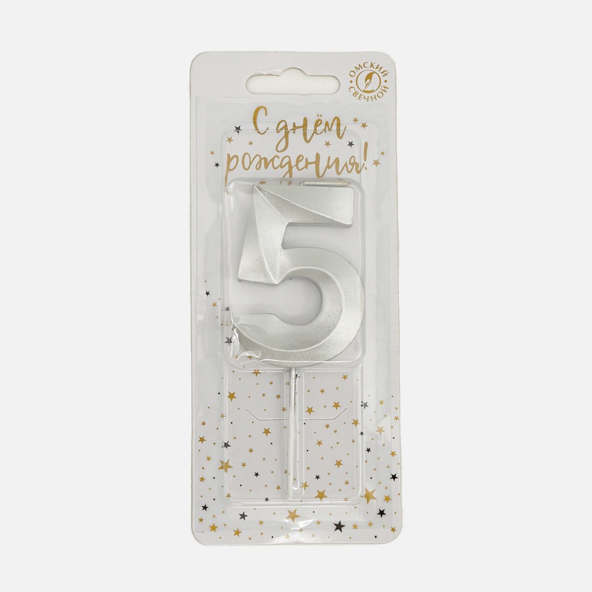 Свеча Омский СЗ тортовая на шпажке 5 Витые серебро парафин 4х1,1х9,5