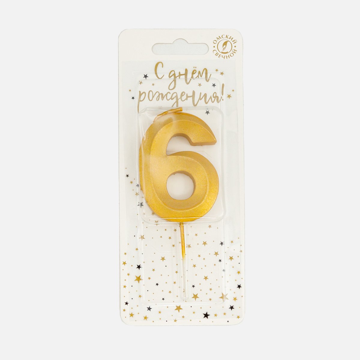 Свеча Омский СЗ тортовая на шпажке 6 Золотые витые парафин 4х1,1х9,5