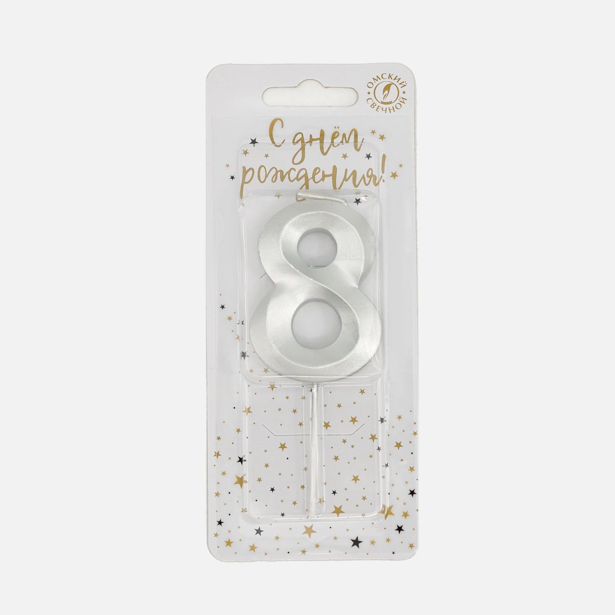 Свеча Омский СЗ тортовая на шпажке 8 Витые серебро парафин 4х1,1х9,5