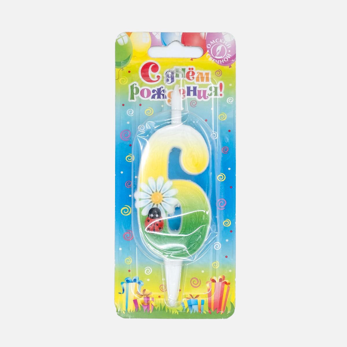 Декоративная свеча для торта. Цифра 6.