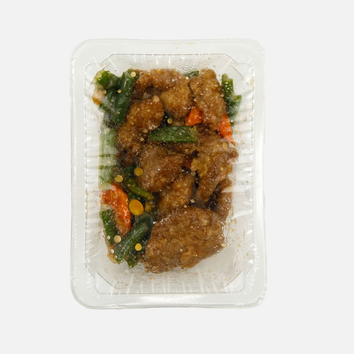 Свинина, морковь, соус терияки, фасоль стручковая, масло подсолнечное, крахмал картофельный, соус соевый, масло кунжутное, соус табаско, чеснок, перец ч/м. Упаковано с применением условий модифицированной атмосферы.