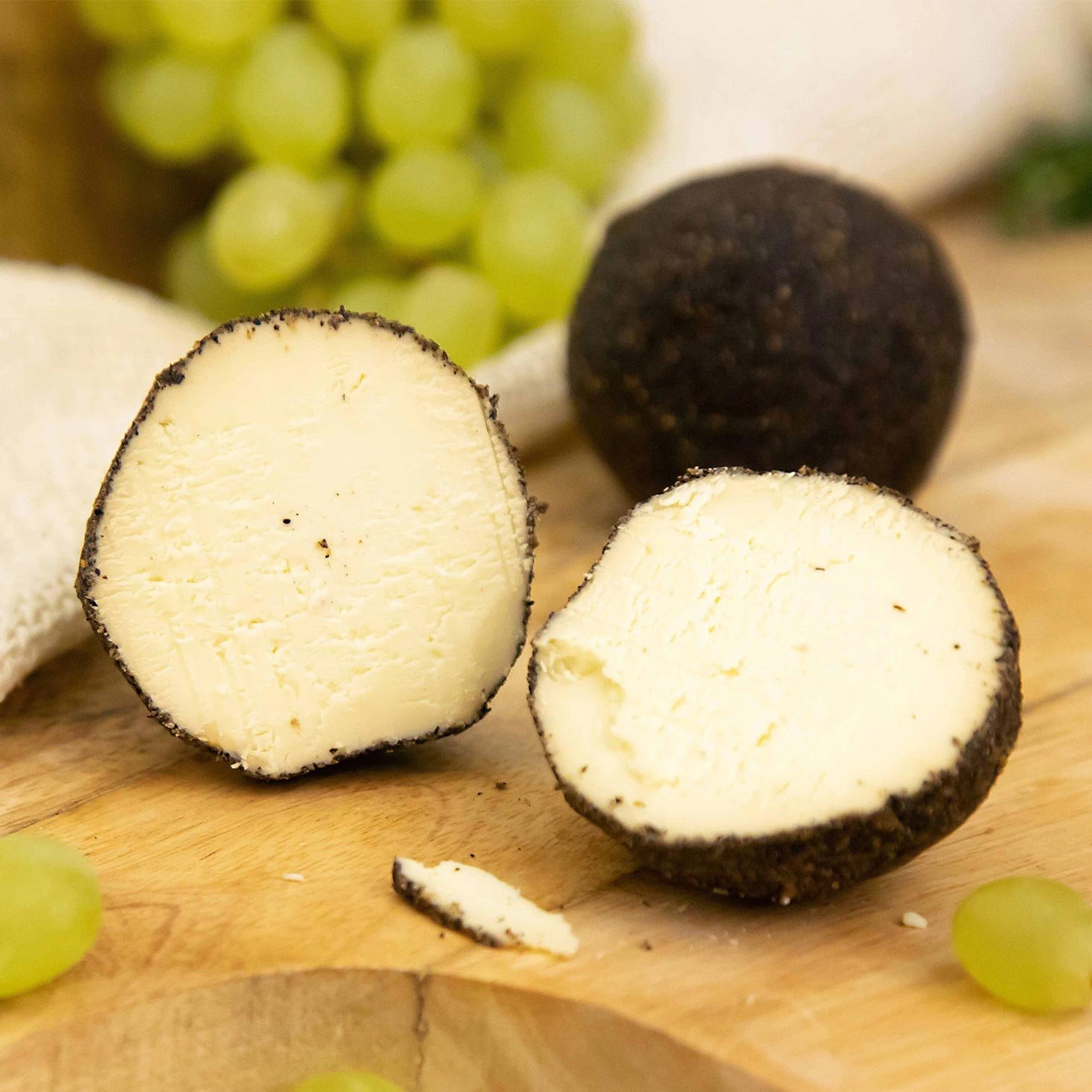 Молоко коровье цельное пастеризованное, соль пищевая, заквасочная культура, сычужный фермент микробного происхождения, перец чёрный молотый, чеснок свежий. М.д.ж. в сух. в-ве 50%.