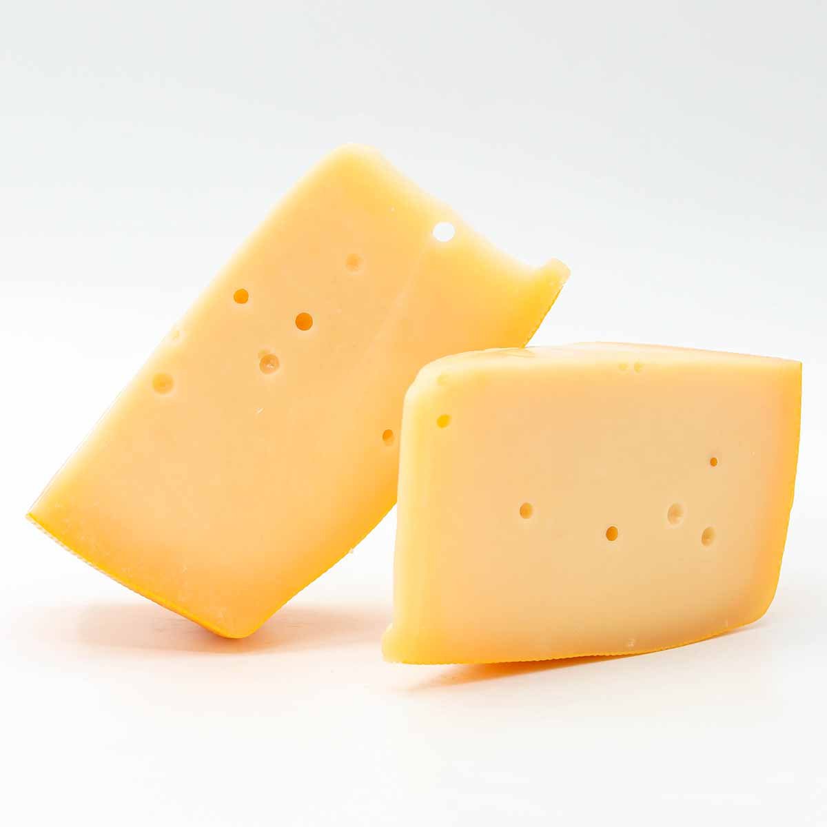 Молоко цельное, молоко обезжиренное, соль пищевая, консервант - нитрат натрия, краситель пищевой натуральный аннато, смешанные закваски мезофильных и термофильных молочнокислых микроорганизмов, молокосвертывающий ферментный препарат животного происхождения. Сырная корка обработана консервантом Е235.