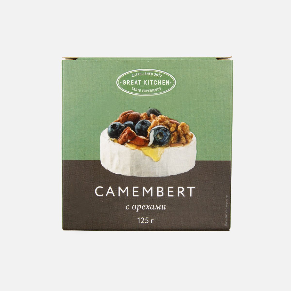 Сыр Грейт Китчен Камамбер с орехами мягкий 50% к/к 125г
