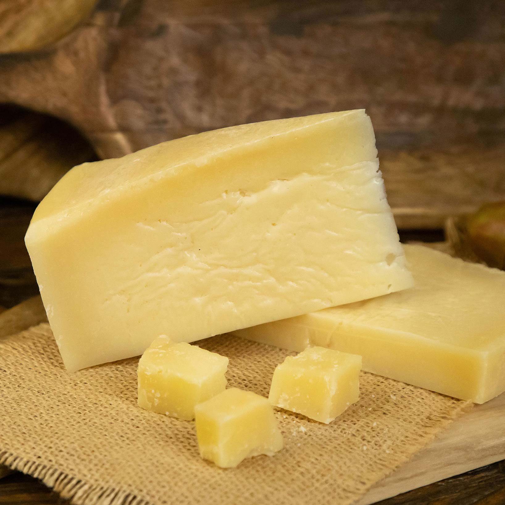 Этот ремесленный сыр в нашем исполнении имеет сладкий, слегка солоноватый вкус с пленительными пикантными нотками и легким ореховым ароматом. Обладает янтарным цветом с темно-золотистой корочкой. Богат витаминами, кальцием, фосфором и калием, поэтому так полезен для поддержания здоровья.