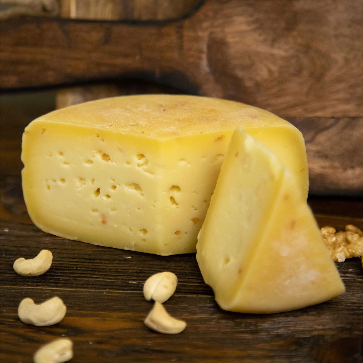 Полутвердый сыр со сладковатым молочным вкусом и ореховыми нотками. Прекрасная альтернатива сырам с орехами, т.к. сохраняет ореховый аромат без присущим орехам калорий. Имеет эластичную структуру и отлично себя чувствует и как самостоятельная закуска, и как дополнение к салатам, пастам, бутербродам.