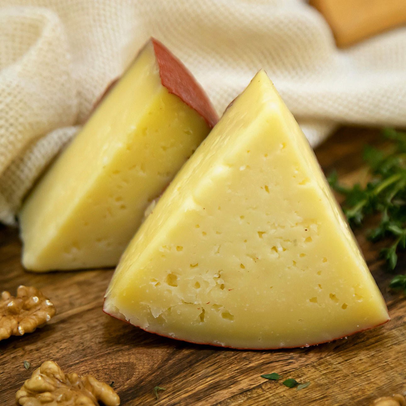 Интересный сыр, произведенный по швейцарской технологии из коровьего молока. Имеет плотный, молочный вкус и приятный желтый цвет. Структура пористая, с сеткой мелких дырочек. Хорош в нарезках и в сочетании с фруктами и орехами.