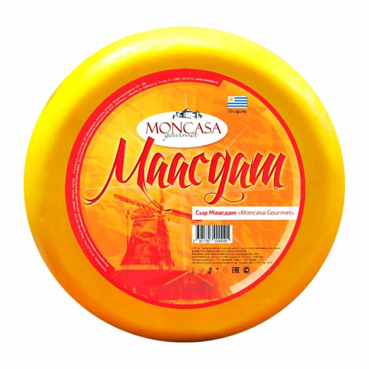 Сыр натурального вызревания 48% жирности, с большими глазками и сладковатым ореховым вкусом. Маасдам - самый популярный сыр Голландии и один из самых производимых в Европе наряду с гаудой и эдамером.