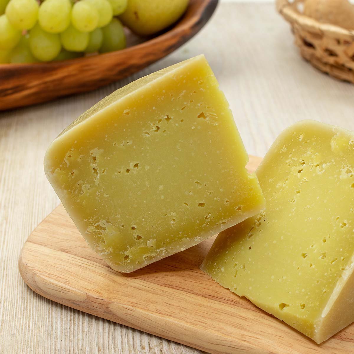 Вкусное пополнение нашей коллекции - сыр Любительский зеленый. Имеет эластичную структуру с множеством глазок. Порадует вас приятным ореховым послевкусием и универсальностью - отлично подходит к любому завтраку или красивой нарезке.