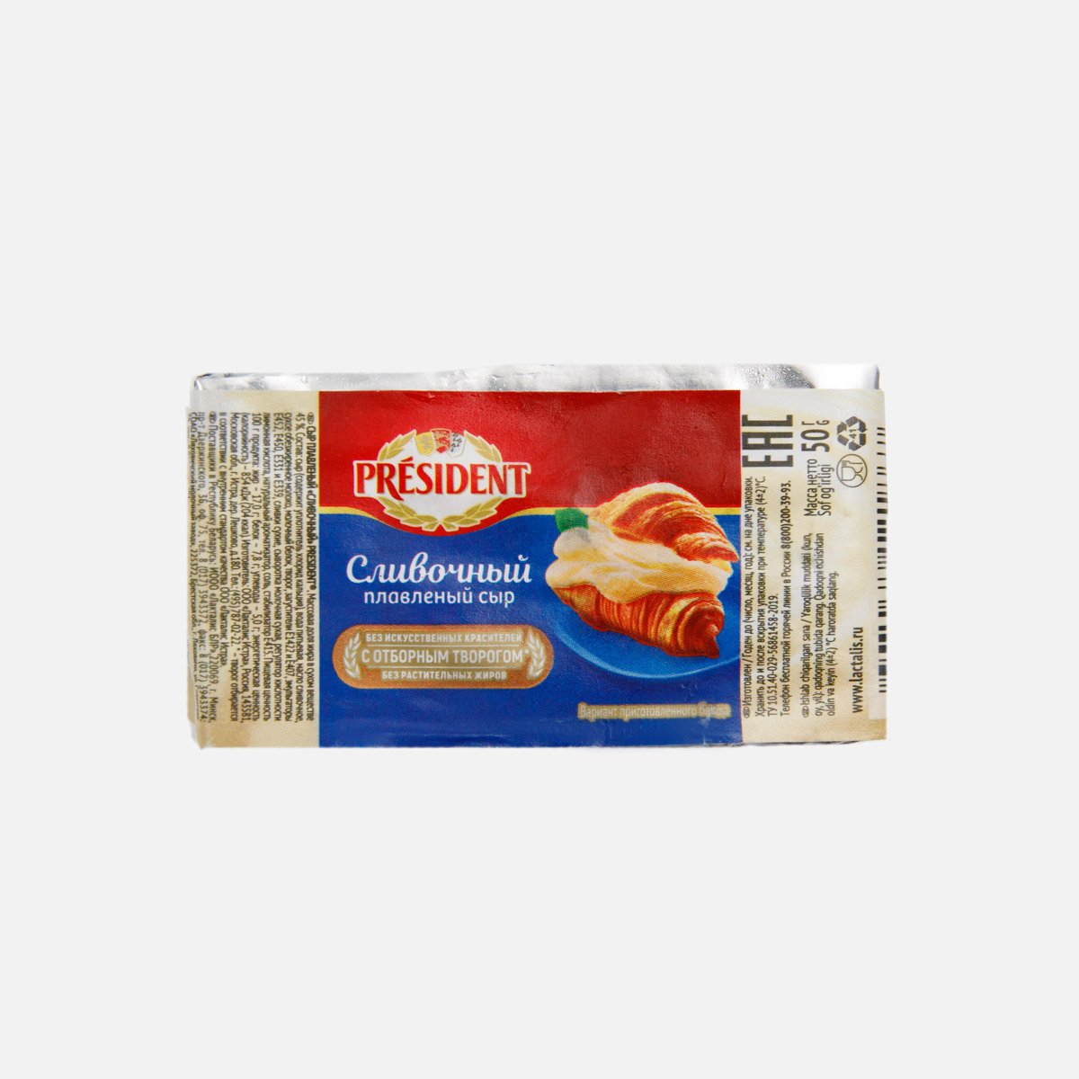 Сыр Президент плавленый Сливочный брусок 35% 50г