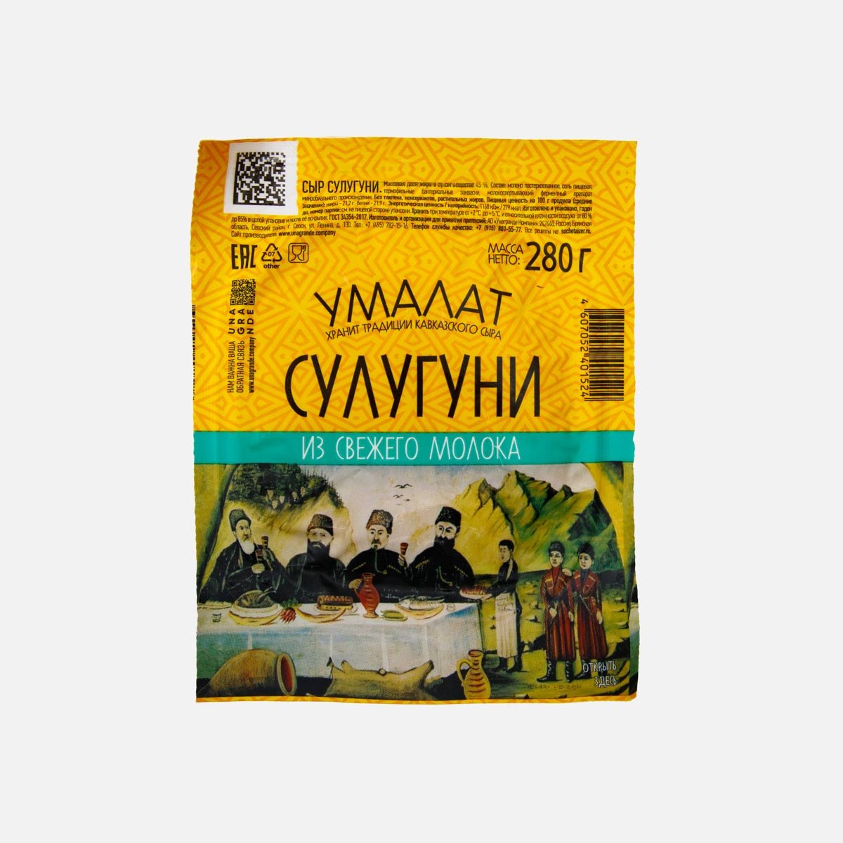 Мягкий рассольный сычужный сыр сулугуни "Умалат" 45% жирности.