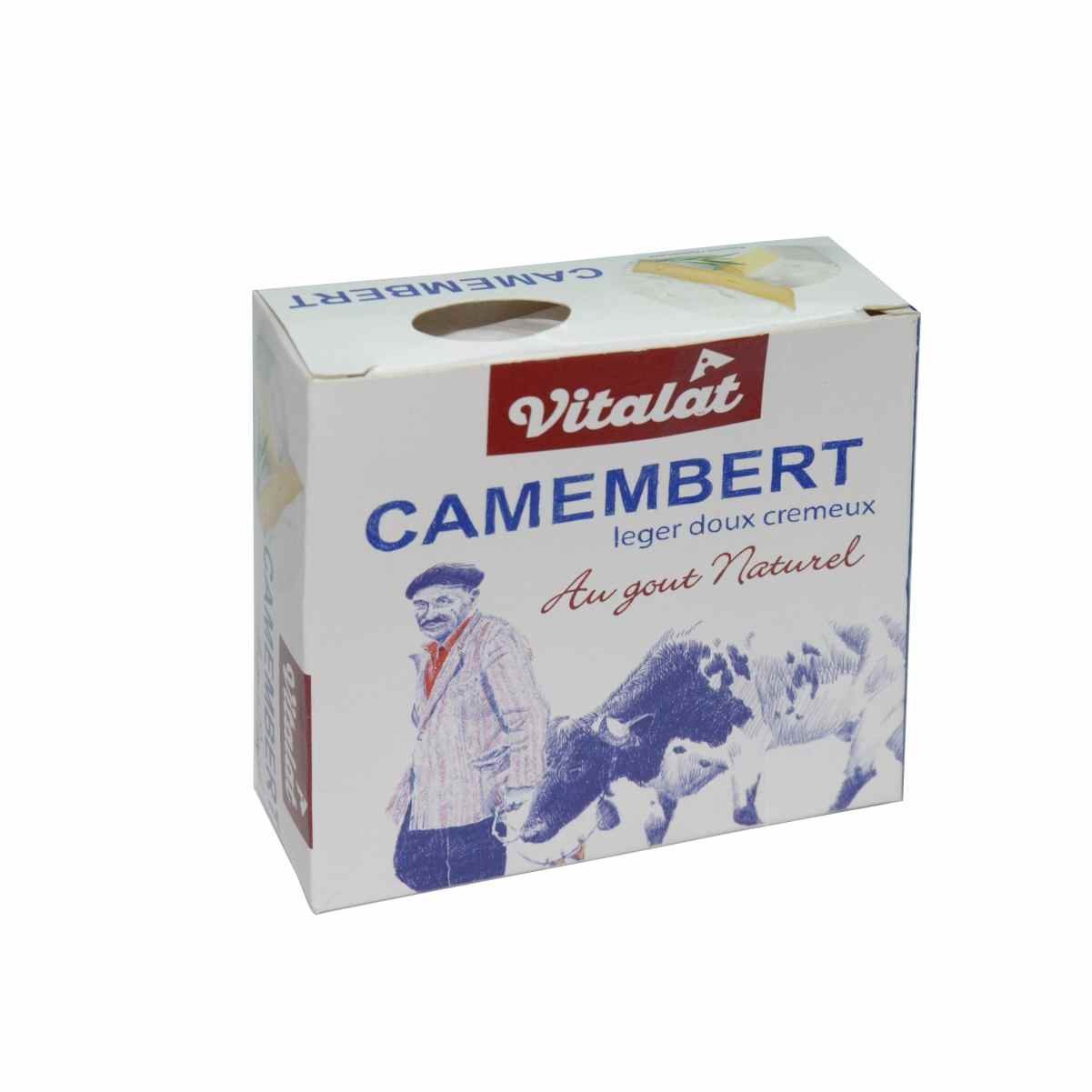 Мягкий сыр "Виталат камамбер" с белой плесенью, 45% жирности. Фасовка - картонный брикет 125 г. Изготовлено в России.