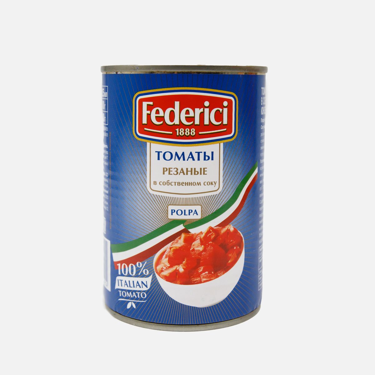 Томаты Федеричи резаные в с/с ж/б/кл 425мл