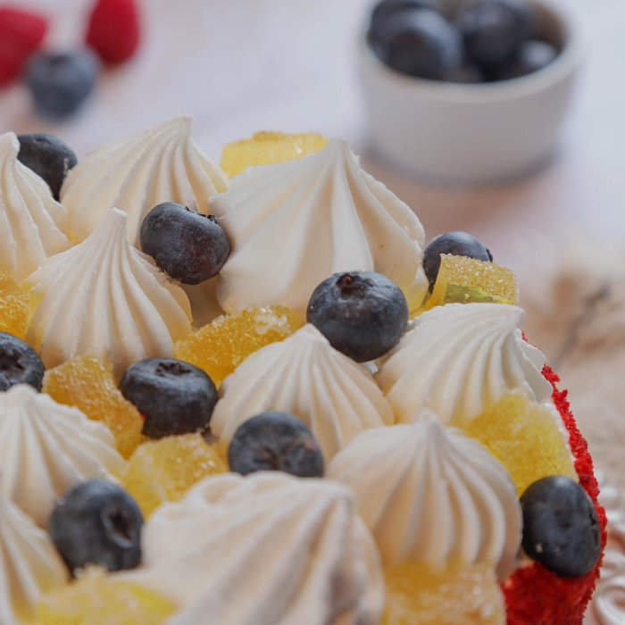 Яйцо куриное, сахар-песок, сыр творожный, малина с/м, сахарная пудра, мука пшеничная в/с, сливки натуральные, сливки растительные, сахарная посыпка, какао, крахмал картофельный, шоколад белый, краситель пищевой