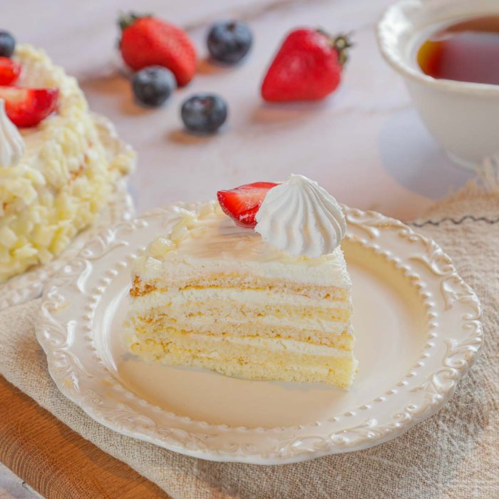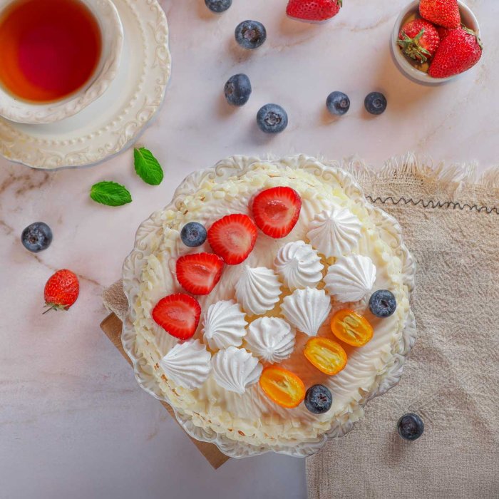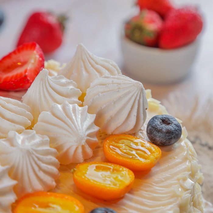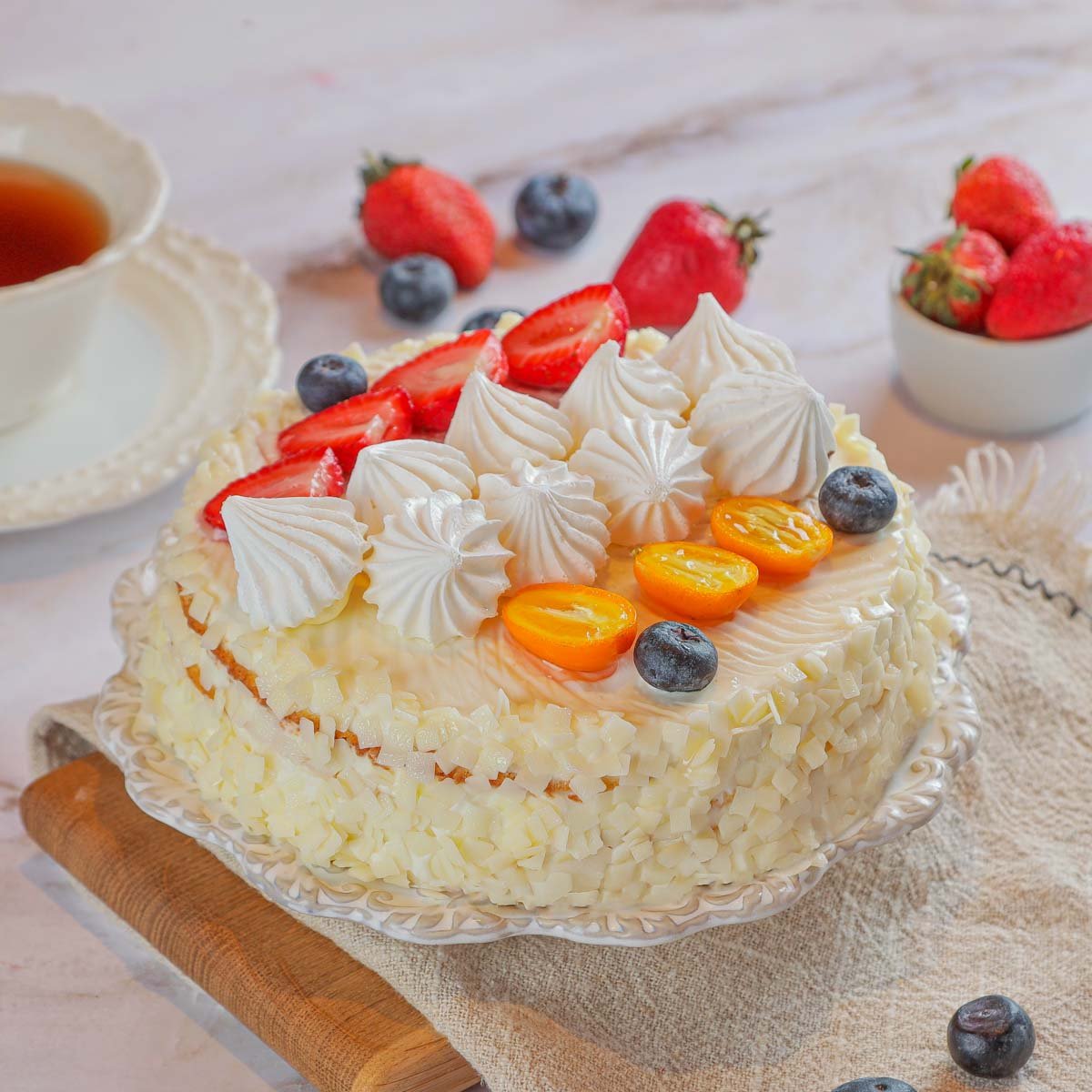 Легендарный торт «Молочная девочка» – это нежные бисквитные коржи на сгущенном молоке, которые тают во рту, оставляя ощущение легкости. Крем из сливочного творожного сыра и сахарной пудры добавляет тонкости, а сочная клубника и свежая голубика придают десерту яркость и свежесть. Легкий намек ликера Бейлиз в сочетании с кисло-сладкими ломтиками кумквата и глянцевым кондитерским гелем создают изысканный вкус. Украшенный воздушными элементами из ванильного безе и посыпкой, этот торт станет украшением любого стола. Удобная доставка сделает ваш день вкуснее.