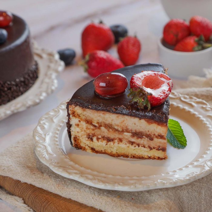 Торт "Райский сад" — настоящее гастрономическое наслаждение. Лёгкие коржи из муки и яиц дополняются нежным кремом на основе сливочного масла и молока. Яркие ягоды — клубника, ежевика, красная смородина и голубика — превращают каждый кусочек в праздник вкуса. Сверху десерт украшен посыпкой и покрыт изысканной шоколадной глазурью. Лёгкий аромат коньяка и "Рома" добавляют особую глубину. Удобная доставка сделает этот торт главным украшением вашего стола.
