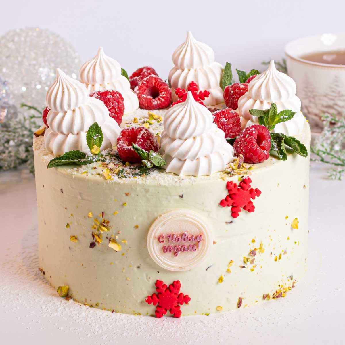 Бисквит (яйцо куриное, сахар, мука пшеничная в/с), малина, молоко сгущенное, сыр творожный, сливки животные, сливки растительные, сироп (сахар, коньяк, ароматизатор Ром), паста Фисташка, воздушный п/ф (сахар, яйцо куриное, кислота лимонная, ванилин), орех фисташка, зелень мяты