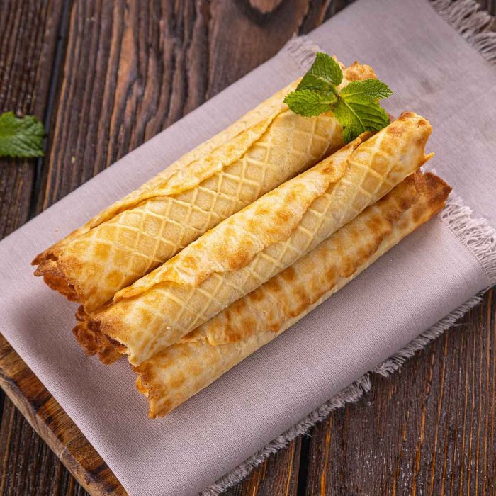 Хрустящие вафельные трубочки с мягкой, слегка сладковатой начинкой – это настоящее лакомство для чаепития. Приготовленные из муки, яиц и сливочного масла, они имеют натуральный насыщенный вкус и текстуру, которая добавляет удовольствия в каждый укус. Сладкий аромат свежего теста и его легкость дополняются легкой ноткой сахара. А доставка к вашему порогу избавит от забот, чтобы вы могли наслаждаться теплом этих трубочек в любой момент, когда душа требует уюта.