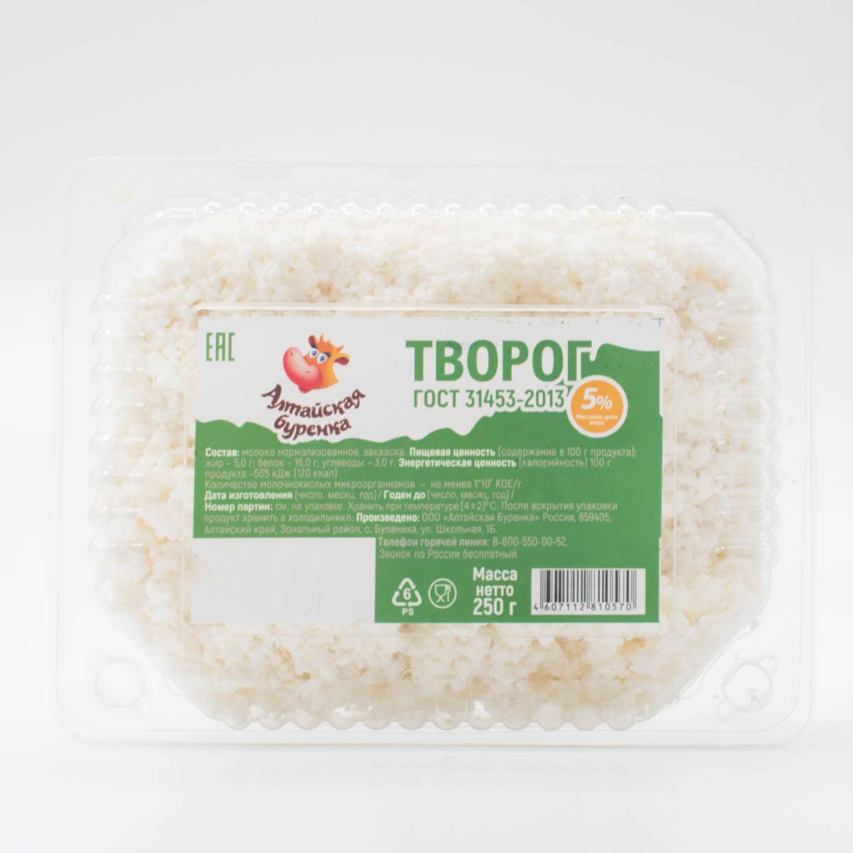 Творог Алтайская буренка 5% пл/конт 250г